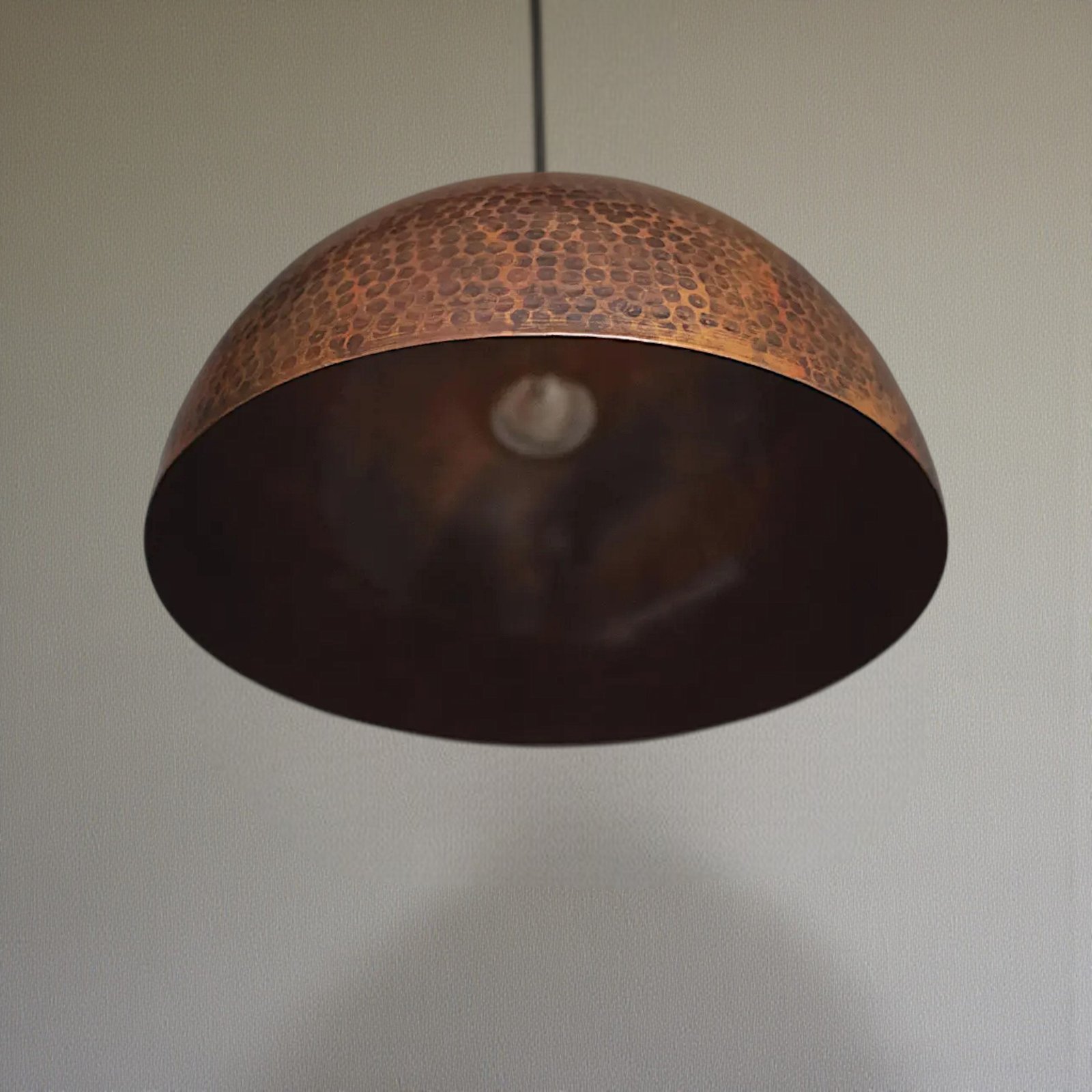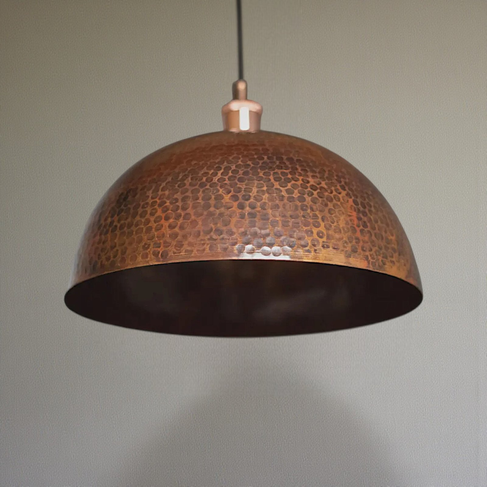 Rustic Copper Pendant Light – Hand-Hammered Dome for Kitchen Island